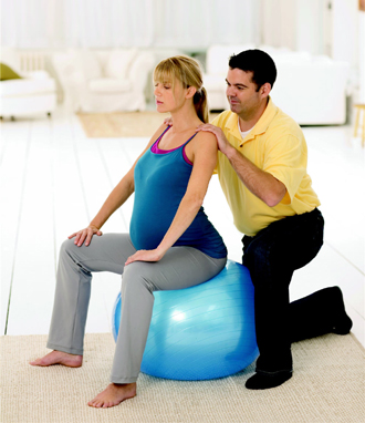· 공 위에 앉아 있는 동작은 골반을 자연스럽게 흔들어주고 회전시켜 주기 때문에 아기가 내려오는 분만 과정을 촉진시킵니다.